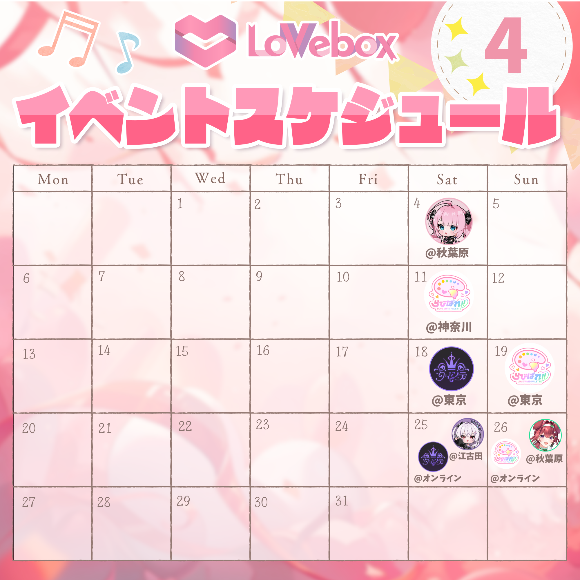 2026年4月〜2026年6月における『ラブボックス』のイベントスケジュールについてお知らせさせていただきます。