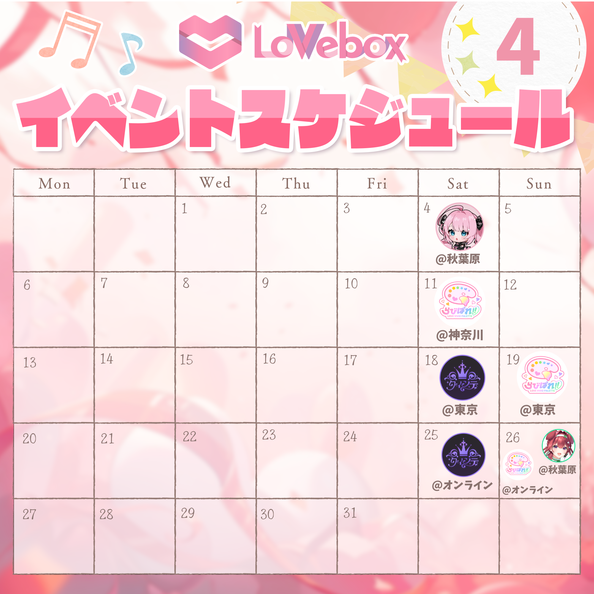 2026年3月〜2026年5月における『ラブボックス』のイベントスケジュールについてお知らせさせていただきます。