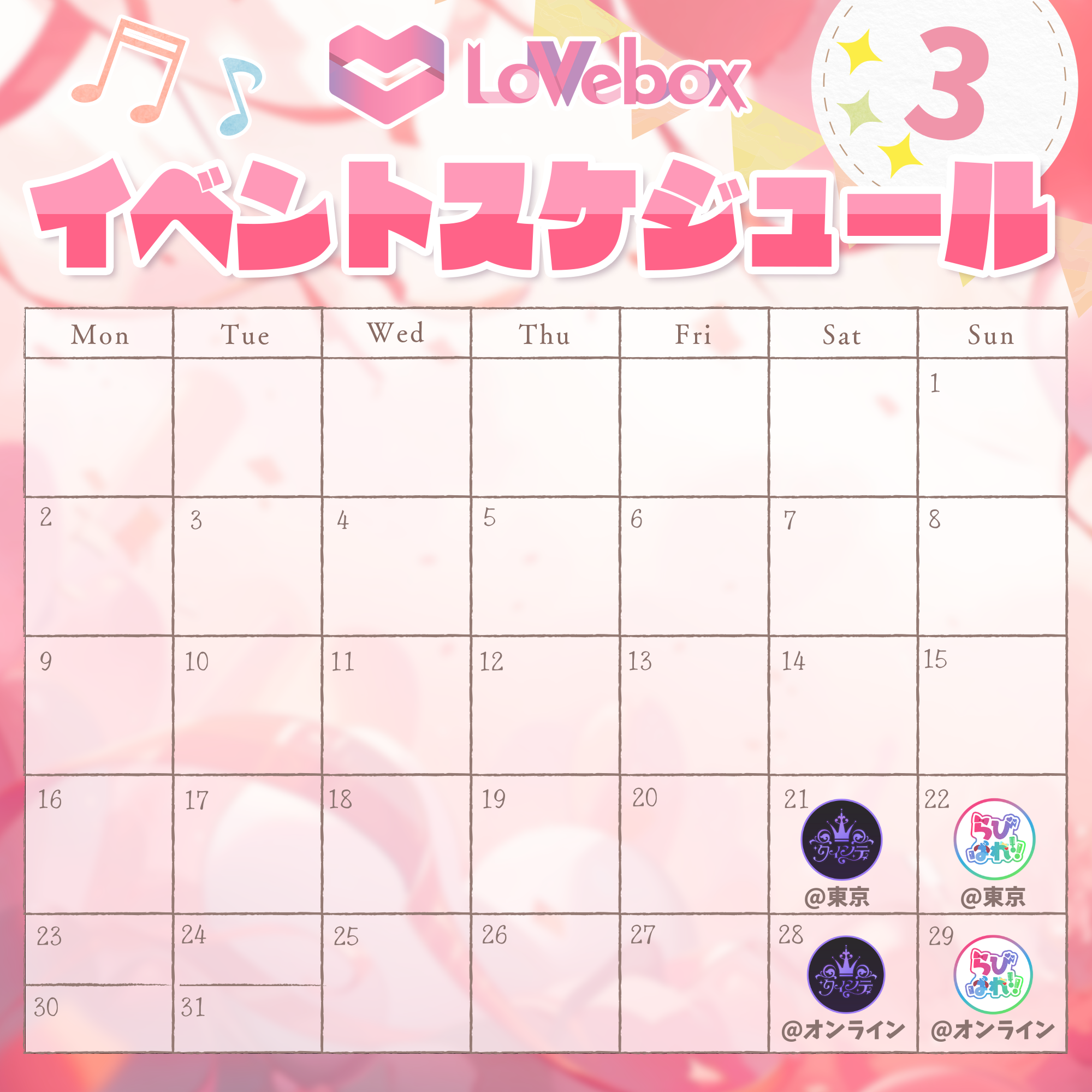 2026年1月〜2026年3月における『ラブボックス』のイベントスケジュールについてお知らせさせていただきます。