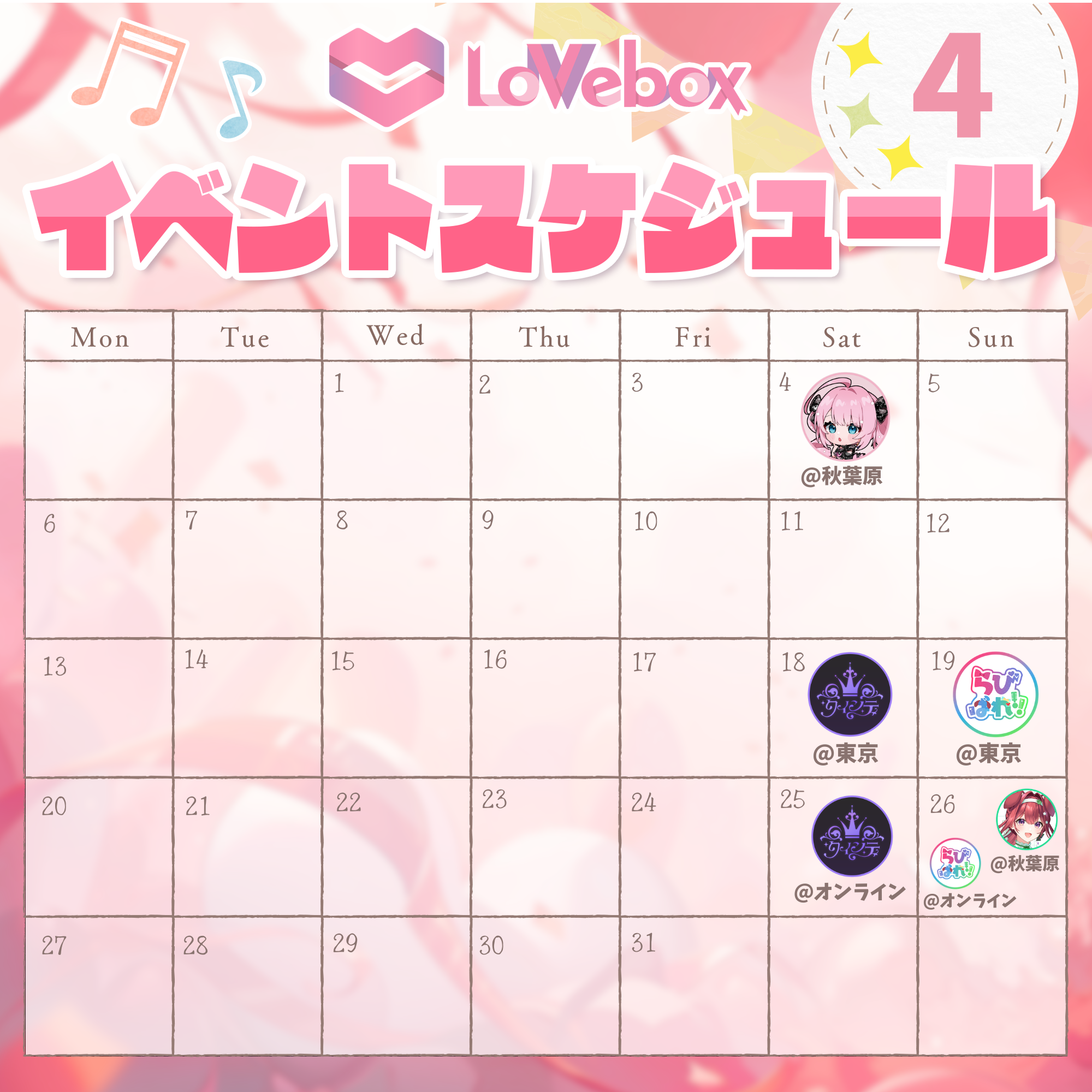 2026年2月〜2026年4月における『ラブボックス』のイベントスケジュールについてお知らせさせていただきます。